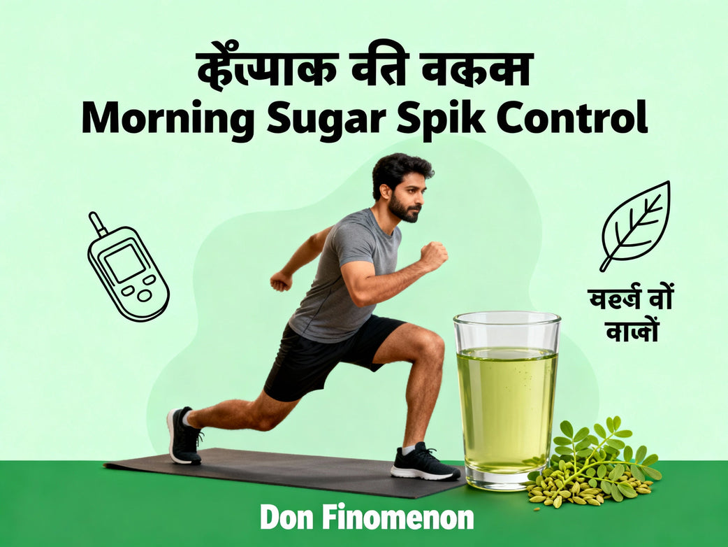 डॉन फिनॉमेनन क्या है? सुबह 3-8 बजे हार्मोन जैसे कॉर्टिसॉल, ग्रोथ हार्मोन रिलीज होते हैं, जो लिवर से ग्लूकोज छोड़ते हैं, इंसुलिन कम होने से स्पाइक होता है। डायबिटीज में आम, 130 mg/dL से ऊपर खतरनाक। सोमोगी इफेक्ट से अलग, यह हाइपरग्लाइसीमिया का कारण बनता है। नियंत्रण के प्रमुख उपाय आहार बदलाव: रात को कम कार्ब्स, प्रोटीन-फाइबर युक्त भोजन। सोने से पहले सिरका या दालचीनी पानी पिएं। घरेलू ड्रिंक्स: सुबह मेथी पानी (रातभर भिगोकर), करेला जूस, आंवला या दालचीनी पानी - इंसुलिन संवेदनशीलता बढ़ाते हैं। व्यायाम: शाम को 30 मिनट वॉक या योग, सुबह प्राणायाम। वजन नियंत्रण रखें। नींद व मॉनिटरिंग: 7-8 घंटे सोएं, CGM से ट्रैक करें। सावधानियां और डॉक्टर सलाह इंसुलिन एडजस्टमेंट या दवा बदलाव डॉक्टर से करें। प्री-डायबिटीज में ये उपाय रिवर्स करने में सहायक। लंबे स्पाइक से हृदय-किडनी जोखिम। https://www.jansatta.com/health-news-hindi/consume-these-4-morning-drinks-to-control-blood-sugar-and-help-reverse-prediabetes/4201480/ https://translate.google.com/translate?u=https%3A%2F%2Fwww.healthline.com%2Fnutrition%2Fblood-sugar-spikes&hl=hi&sl=en&tl=hi&client=srp https://redcliffelabs.com/myhealth/diabetes-in-hindi/treatment-to-eliminate-sugar-from-its-roots-home-remedies-and-tips/